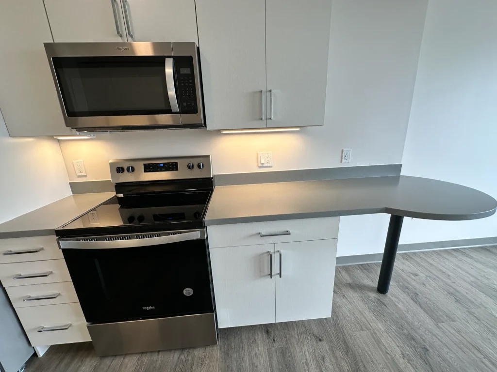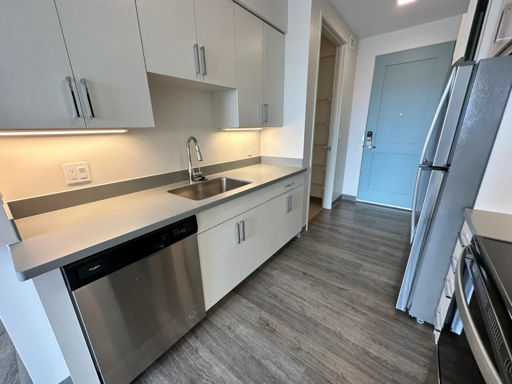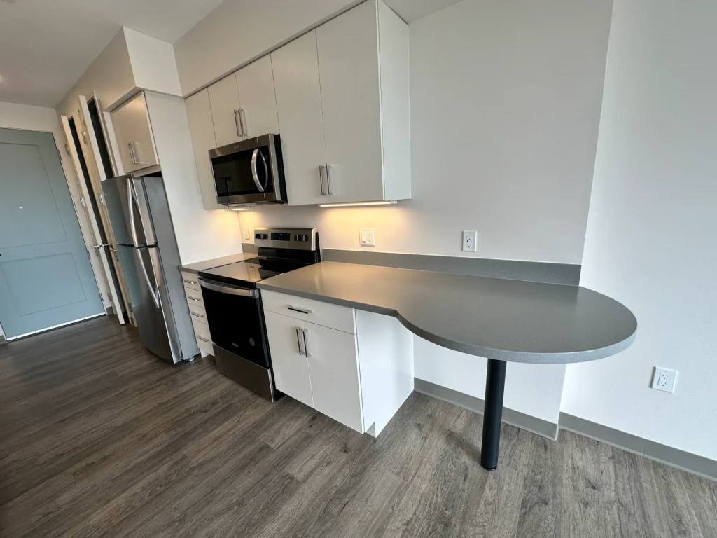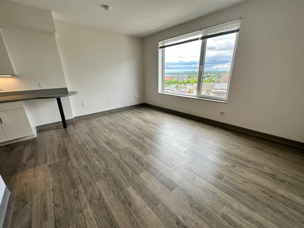 4th Flr, Studio, The Pluto, Non Smoking, Pet Friendly Sm Dogs, DW, Micro, W/D, Central Air & Heat, Wood Style Flooring, Off-street Parking for 2 vehicles, Elm St. view, Gym, Yoga Studio, Elevator, Smart Locks, Optional Storage, EV Charging